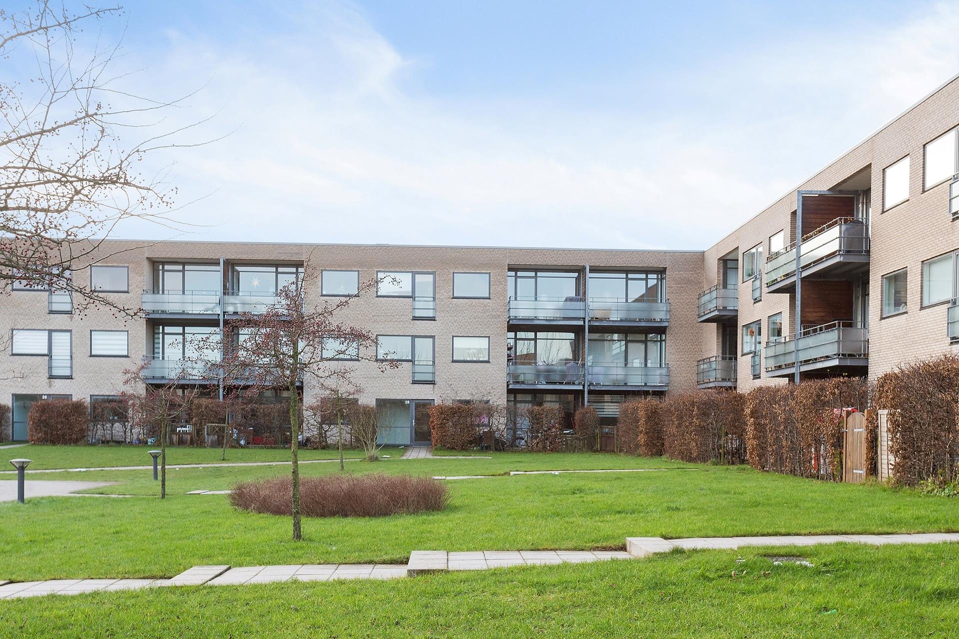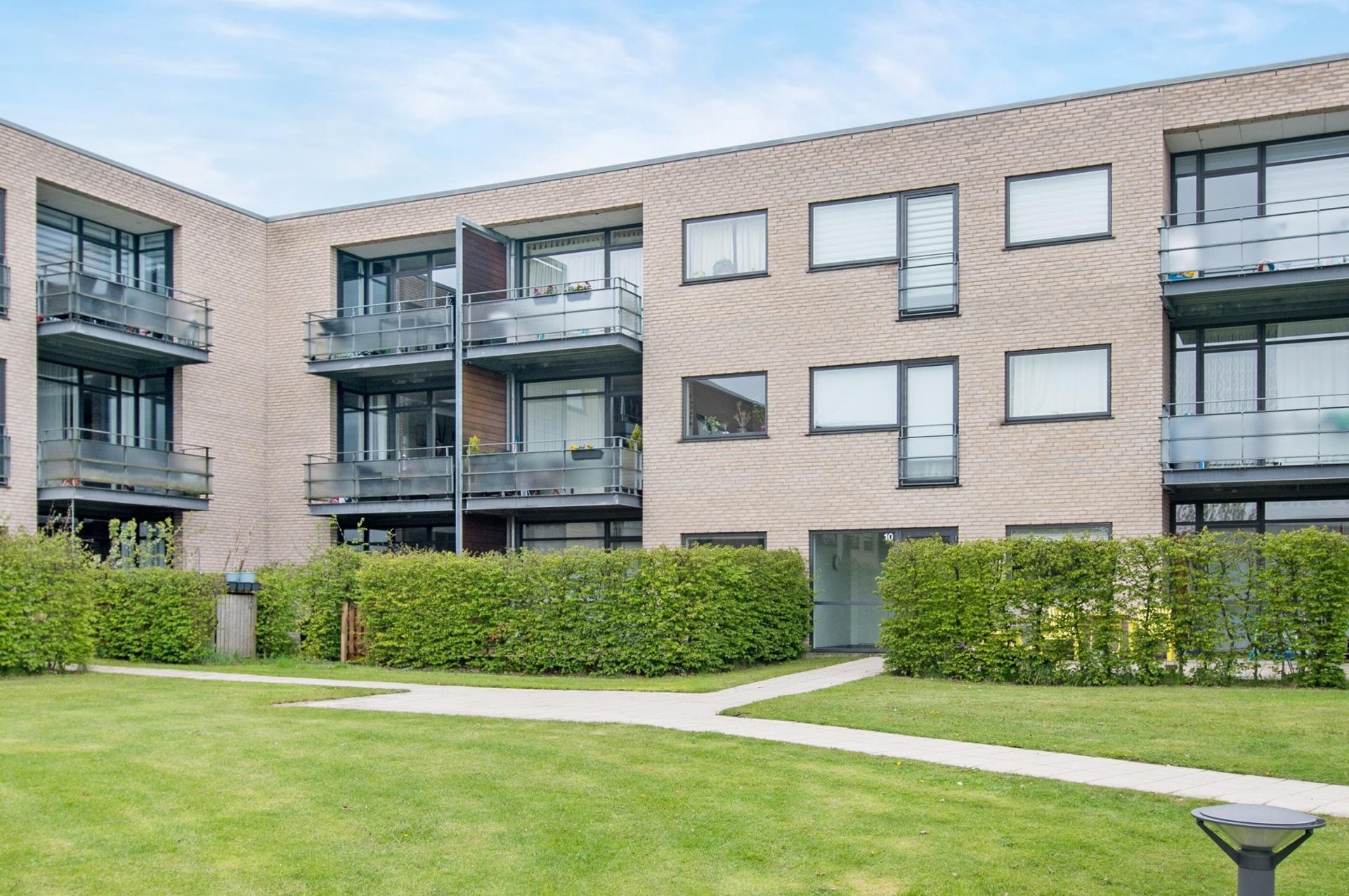 Stuelejlighederne har egen terassehave. Hjørnelejlighederne i stueplan og lejlighederne på de øvrige etager er udstyret med en stor altan